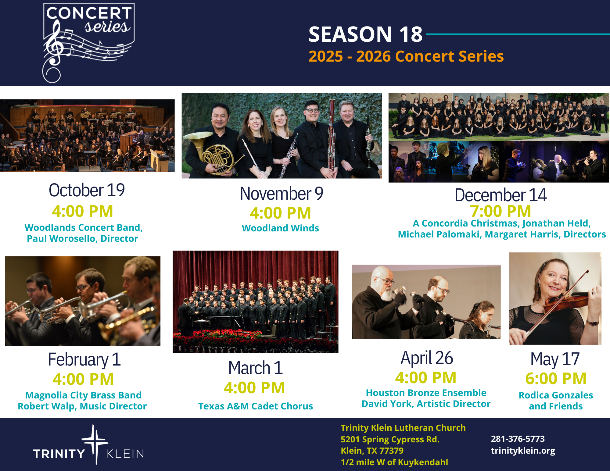 Trinity carries forward a rich Lutheran tradition of incorporating rich music into worship and educational life. Martin Luther said, ”Next to the Word of God the noble art of music is the greatest treasure in the world,” and we at Trinity Klein value and see music as one of God’s greatest gifts. Whether the worship style is traditional or contemporary, Trinity has a long standing history of striving for musical excellence.
